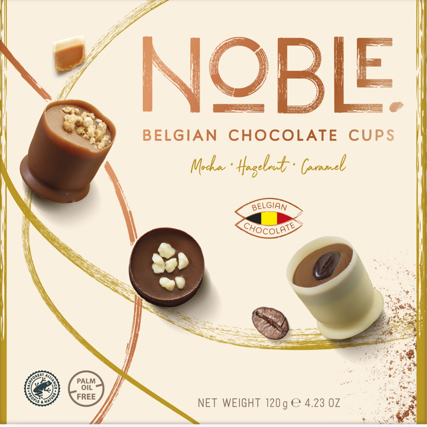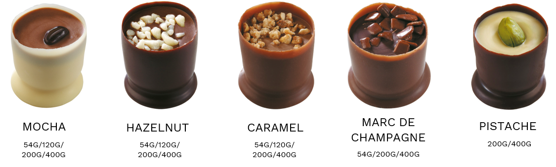 Plněné čokoládové pohárky - Mokka, Lískový ořech, Karamel.