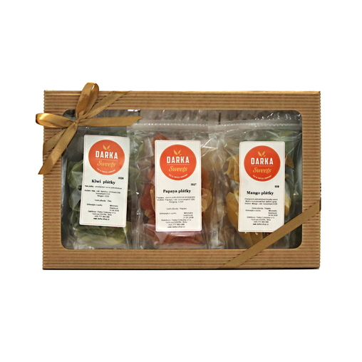 Papaya plátky - 100g Složení: Papaya, cukr třinový, kyselina citronová, oxid siřičitý 0,01%.