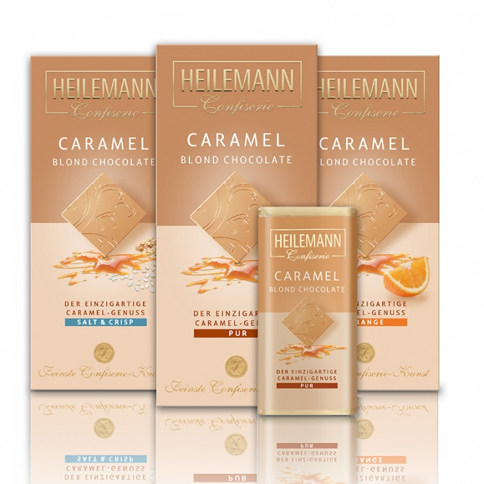 Složení: cukr, kakaové máslo, sušené plnotučné mléko, karamelový prášek (9,5%) (sušené odstředěné mléko, sušená syrovátka, cukr, mléčný tuk, přírodní vanilkové aroma), sušené odstředěné mléko, kousky karamelu (4%) (cukr, kakaové máslo, sůl, přírodní aroma, glukózový sirup, barviva: cukerný kulér, Lutein), karamelizovaný cukr, kakaová hmota, sůl, emulgátor: lecitin (slunečnicový). Možné stopy: skořápkové plody, arašídy, lepek, sója a vejce. Nutriční hodnoty ve 100 g: energetická hodnota: 2349 kJ / 563 kcal, tuky: 36g (z toho nasycené mastné kyseliny: 22g), sacharidy: 51g (z toho cukr: 51g), bílkoviny: 7,8g, sůl: 1,2g. Vyrobeno v Německu. Hmotnost: 80 g. Minimální trvanlivost do: viz. obal.