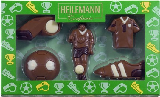 Dárková sada figurek z mléčné čokolády. Mléčná čokoláda dekorovaná bílou a hořkou čokoládou.