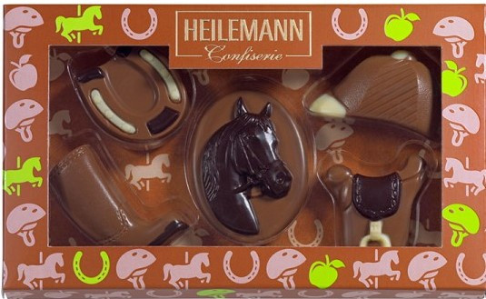 Dárková sada figurek z mléčné čokolády. Mléčná čokoláda dekorovaná bílou a hořkou čokoládou.