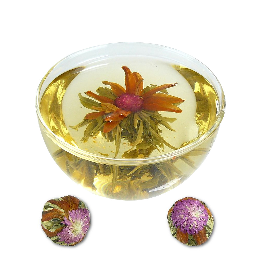 Překvapte své blízké, přátele něčím ojedinělým! Tento originální čaj vzniká velmi složitě a to tak, že je ručně svinován a poté balen. Kvetoucí čaj se motá do tzv. punčošek, které se nechají zavadnout a poté jsou vyjmuty. Pro představu, se jedná o materiál, který se používá na výrobu klasických dámských punčoch. Do kvetoucího čaje je ručně svinován vždy pouze jeden květ, např. (lilie, měsíček, jasmínu).