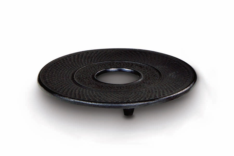 Tento elegantní litinový podstavec je navržen speciálně pro tradiční čajové konvice, aby zajistil jejich stabilitu a zároveň ochránil povrch stolu před horkem. Má kulatý tvar s mírně vyvýšeným středem a charakteristickou texturou jemných výstupků, které ladí s designem litinových konvic i šálků. Tři malé nožky na spodní straně dodávají podstavci stabilitu a lehce ho zvedají nad povrch, čímž umožňují lepší rozptyl tepla. Litina skvěle akumuluje teplotu, což pomáhá udržet čajovou konvici teplou po delší dobu. Černý smaltovaný povrch nejen přidává na estetice, ale také zajišťuje odolnost vůči vlhkosti a snadné čištění.