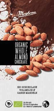 BIO mléčná čokoláda s celými praženými mandlemi.