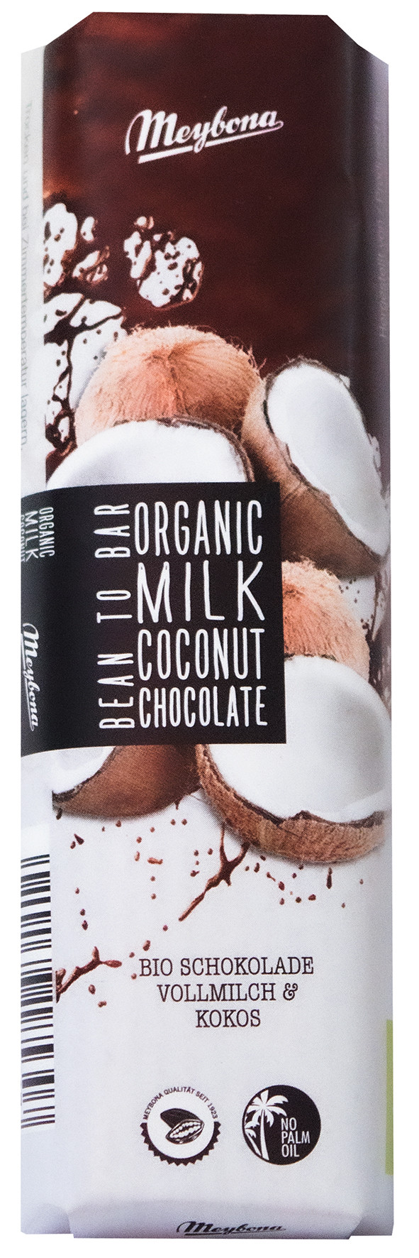 BIO mléčná čokoláda s kokosovými vločkami. Složení: surový třtinový cukr*, kakaové máslo*, sušené plnotučné mléko v prášku* (23 %), kokosové vločky* (10 %), kakaová hmota*, vanilka Bourbon*. Minimální podíl kakaové sušiny: 35 %, mléčných částí (26 %). * = produkty ekologického zemědělství. Možné stopy: lepek (pšenice), mandle, lískové ořechy. Nutriční hodnoty ve 100 g: energetická hodnota 2437 kJ / 587 kcal; tuk 41,4g (z toho nasycené mastné kyseliny 26,8g); sacharidy 44,4g (cukr 43,8g); bílkoviny 7,7g; sůl 0,22g. Uchovejte v suchu při pokojové teplotě, chraňte před teplem. Vyrobeno v Německu. Dovozce: Chocotherapia s.r.o., Loosova 1, 638 00 Brno. Hmotnost: 35 g. Minimální trvanlivost do: viz. obal.