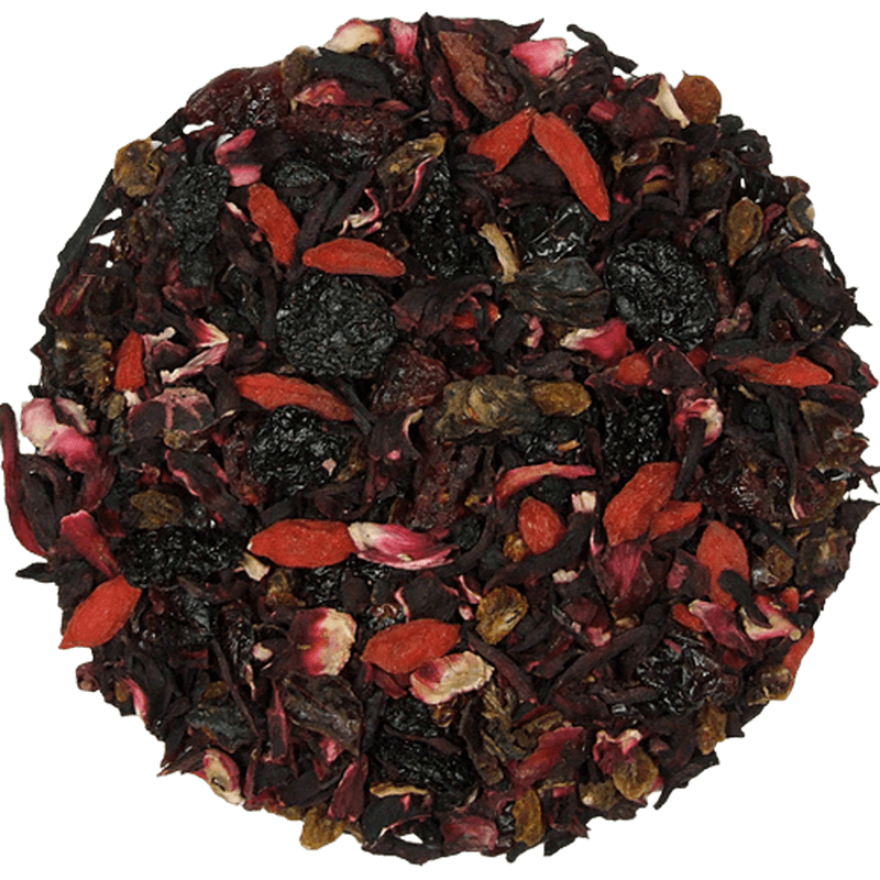 Složení: Ibišek květ, růže květ, brusinky, goji plody, rakytník řešetlákový, černý bez, lyofilizované třešně, přírodní aroma.