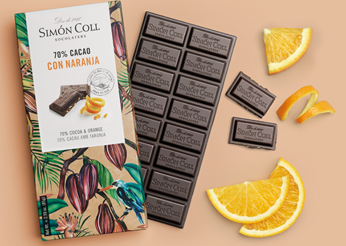 Složení: kakaová hmota, cukr, kakaové máslo, odtučněný kakaový prášek, lyofilizovaný pomeranč (3%), emulgátor (sójový lecitin), aroma. Minimální podíl kakaové sušiny: 70%. Může obsahovat stopy mléka a ořechů. Nutriční hodnoty ve 100 g: energetická hodnota:2298 kJ / 554 kcal, tuky 39g (z toho nasycené mastné kyseliny 24g), sacharidy 36g (z toho cukr 29g), bílkoviny 9,4g, sůl 0,05g. Uchovejte v suchu a chladu. Vyrobeno ve Španělsku. Hmotnost: 85g.
