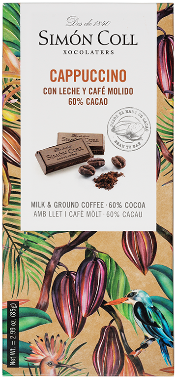 Složení: kakaová hmota, plnotučné mléko v prášku, cukr, kakaové máslo, pražená mletá káva (7 %), emulgátor: sójový lecitin, aroma. Minimální podíl kakaové sušiny: 60 %. Minimální podíl mléčné sušiny: 20 %. Může obsahovat stopy ořechů. Uchovejte v suchu a chladu. Nutriční hodnoty ve 100 g: energetická hodnota:2285 kJ / 550 kcal, tuky 38g (z toho nasycené mastné kyseliny 24g), sacharidy 37g (z toho cukr 34g), bílkoviny 10g, sůl 0,2g. Uchovejte v suchu a chladu. Vyrobeno ve Španělsku. Hmotnost: 85g.