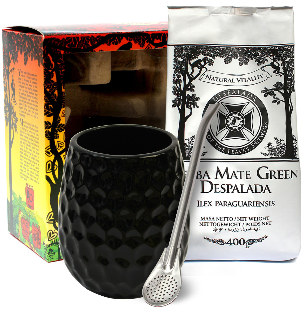 Lahodný povzbudivý bylinný čaj Yerba Maté Green Despalda je velmi povzbudivý nápoj a dává nápoji příjemné aroma a lahodnou chuť. V sadě se dále nachází hnědá kalabasa, bombila. Čaj je tradiční jihoamerický nápoj, který se podává v kalabase a popíjí bombillou.